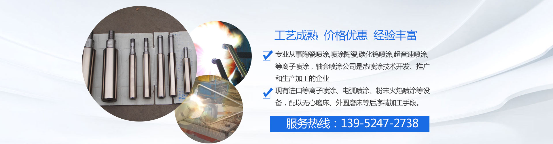 現(xiàn)有進(jìn)口等離子噴涂、電弧噴涂、粉末火焰噴涂等設(shè)備,配以無心磨床、外圓磨床等后序精加工手段